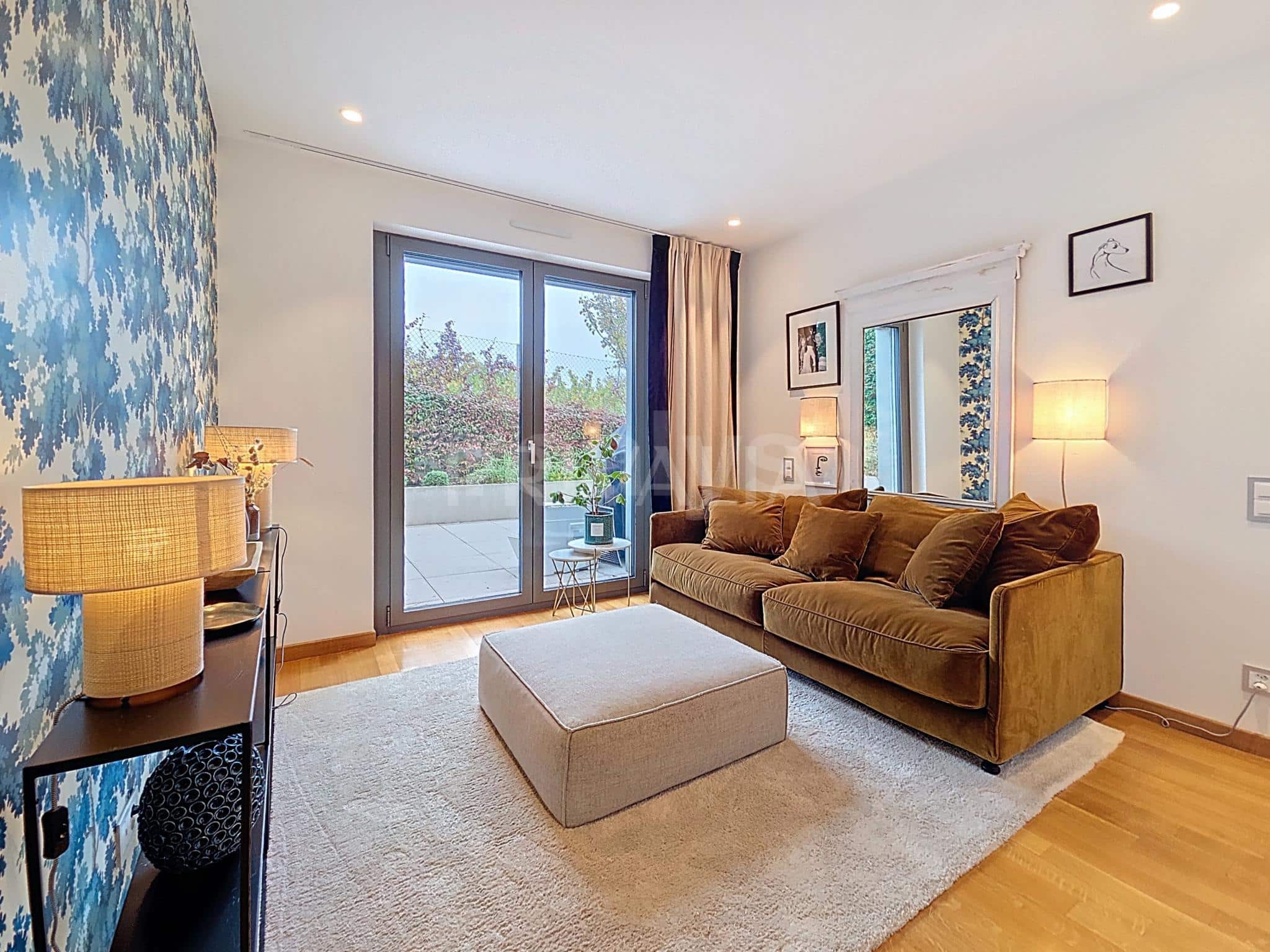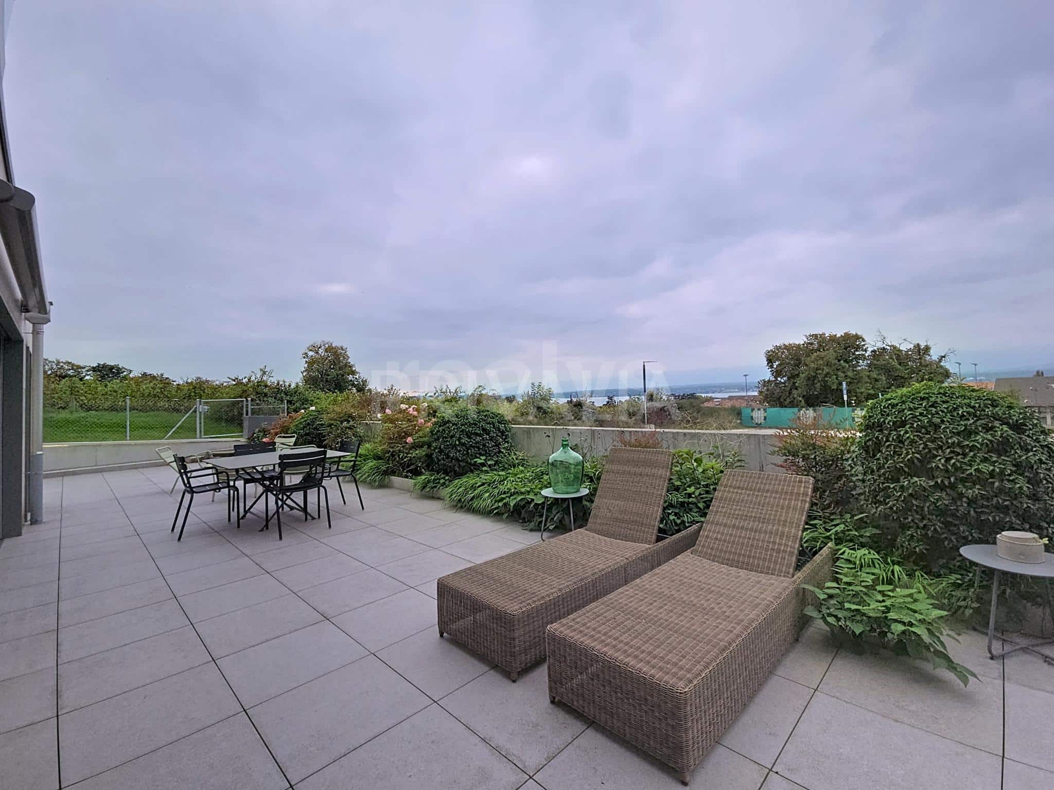 Located on the lower ground floor, this beautiful apartment of approximately 172m² comprises 6 rooms, including 4 bedrooms, and benefits from beautiful living spaces and pleasant volumes. Thanks in particular to high ceilings, full-height doors and large sliding glass doors, the interior finishes will suit even the most demanding families. In addition, it benefits from a superb 130 m² terrace with unobstructed views of the countryside.